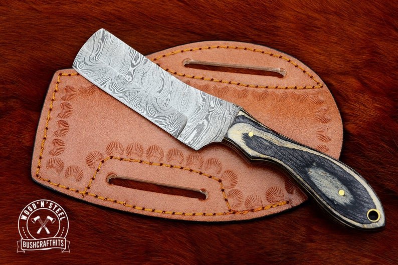 Be the first to review “CUSTOM Cowboy Bull Cutter Knife Made from Damascus Steel, 8″ Handmade Knife With Leather Sheath Included, Bushcrafthits, Cooking, Culinary”