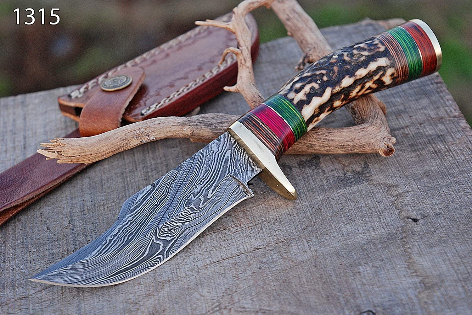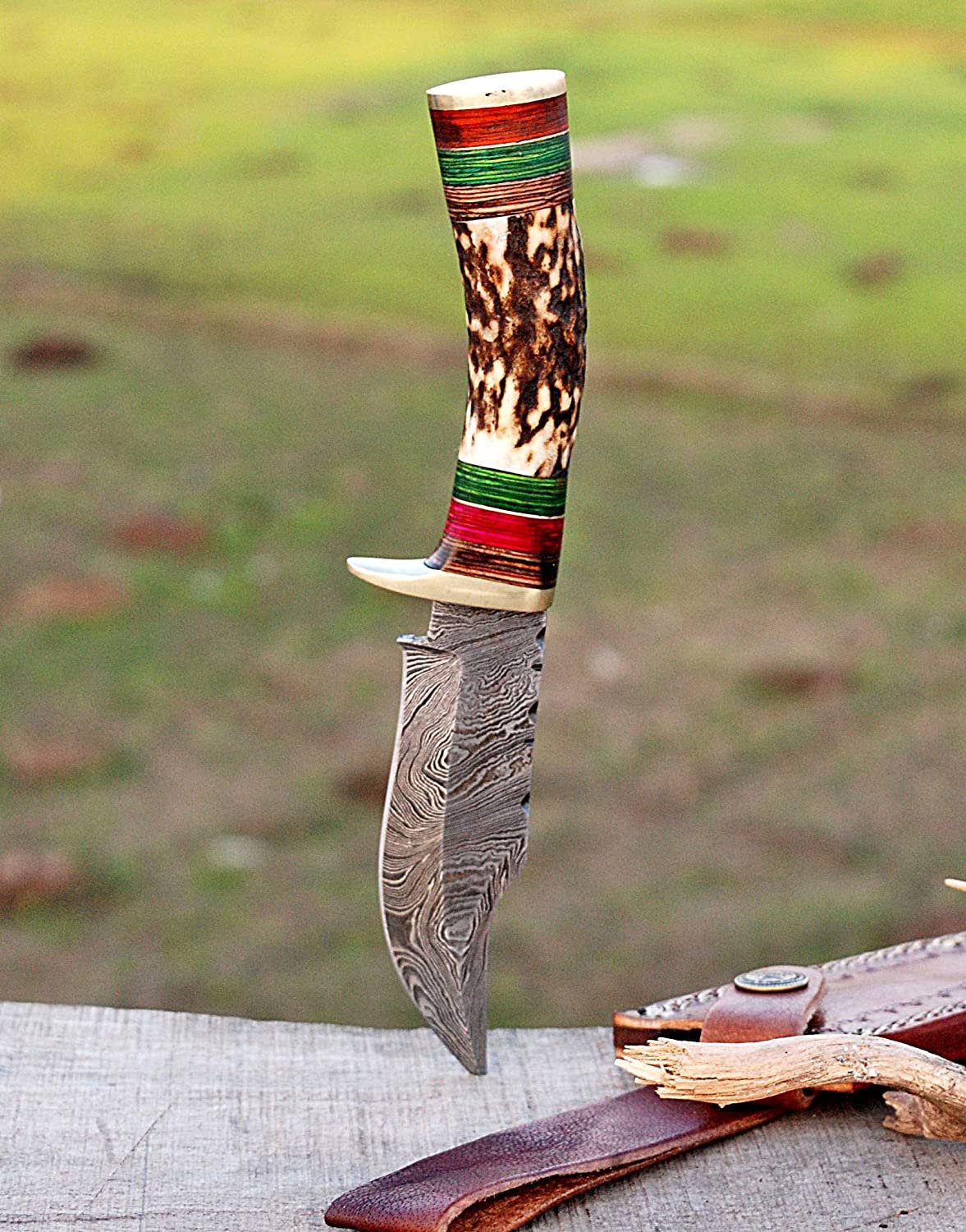 Custom Hand Forged Damascus Steel Hunting Knife w/Stag Handle