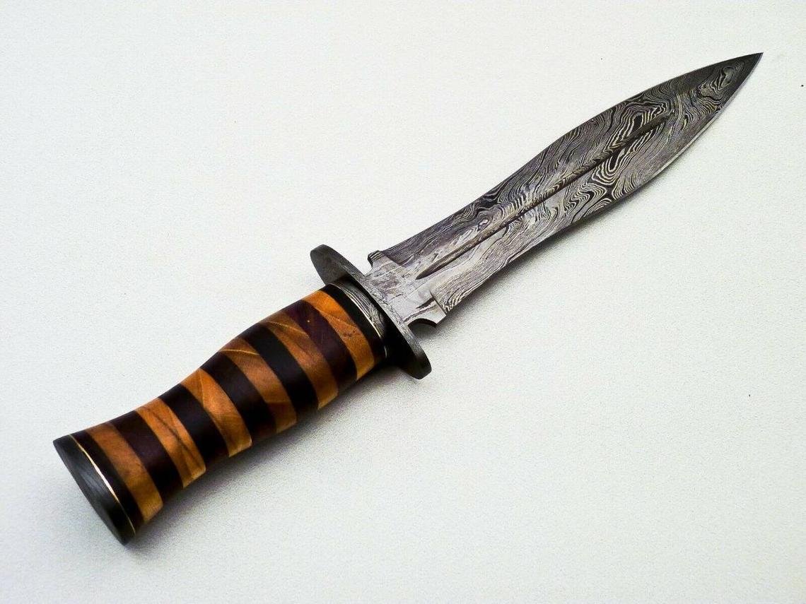 Custom Hand made Damascus steel Double edge Dagger boot knife with beautiful handle camping knife