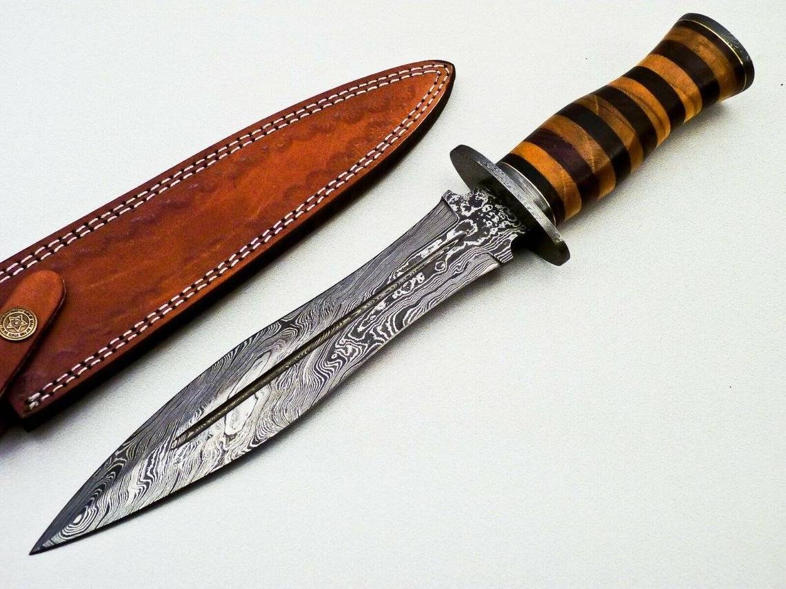BEST QUALITY CUSTOM HAND MADE Damascus steel Dagger double edge knife HUNTING KNIFE.