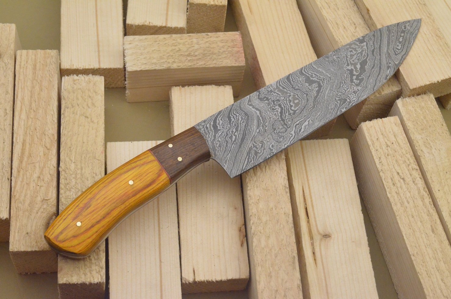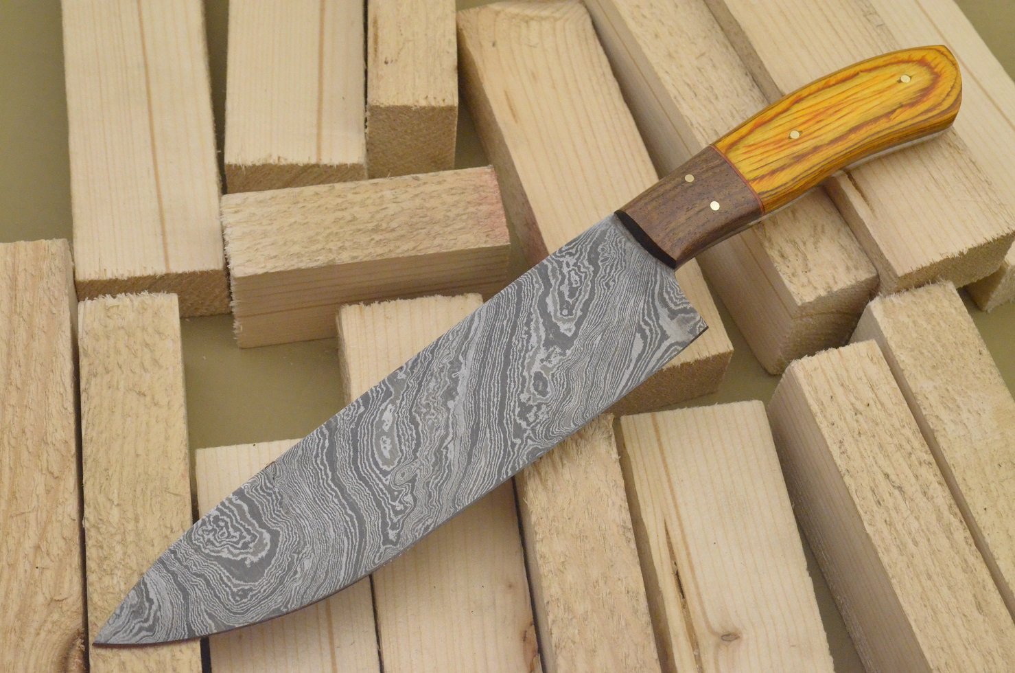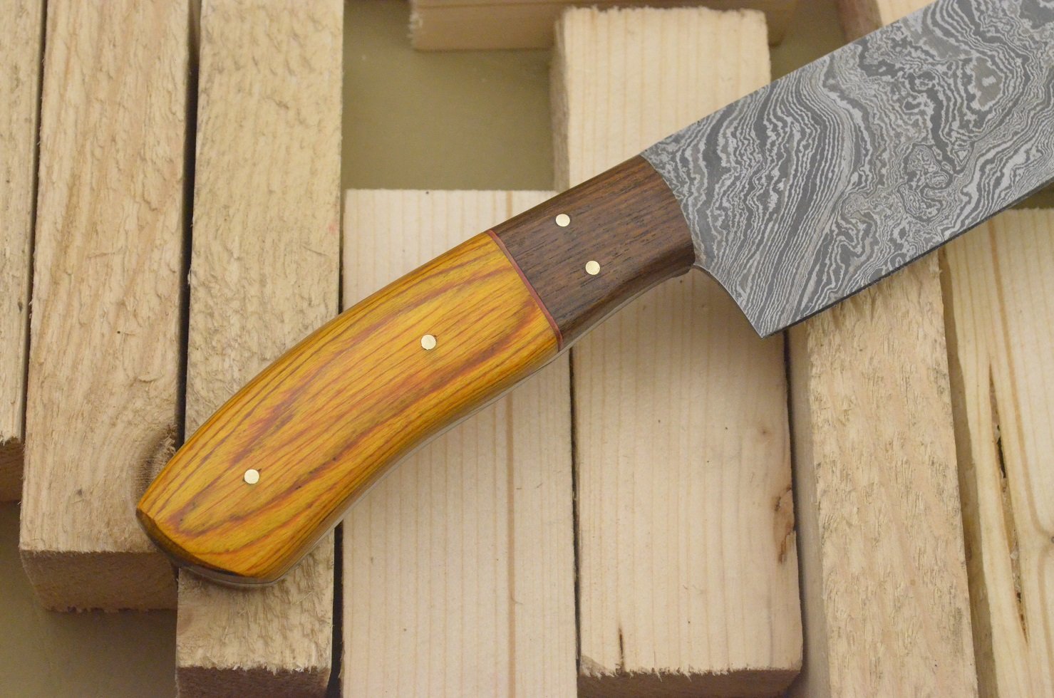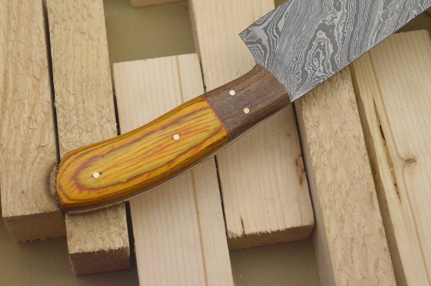 Custom Hand Made Damascus Steel Kitchen Knife with Colored Wood Handle