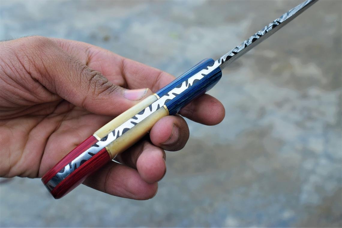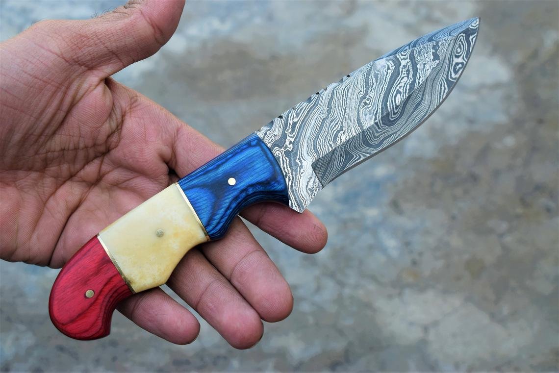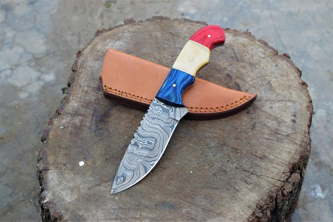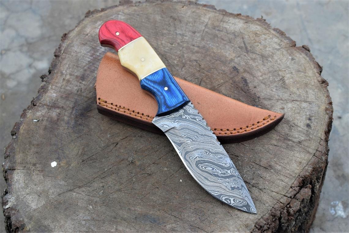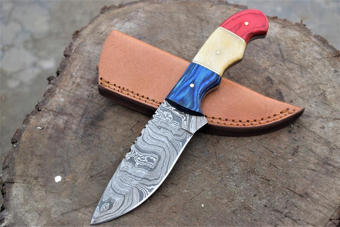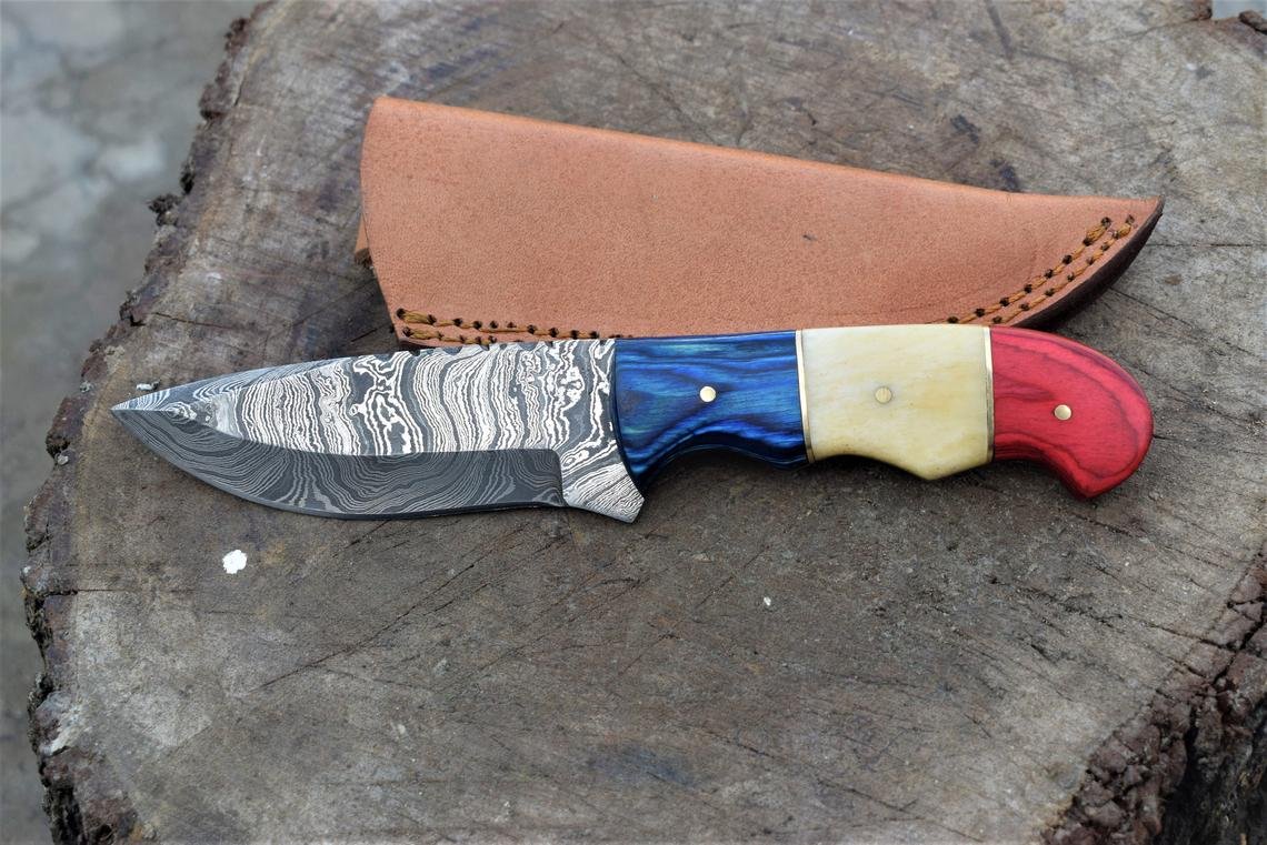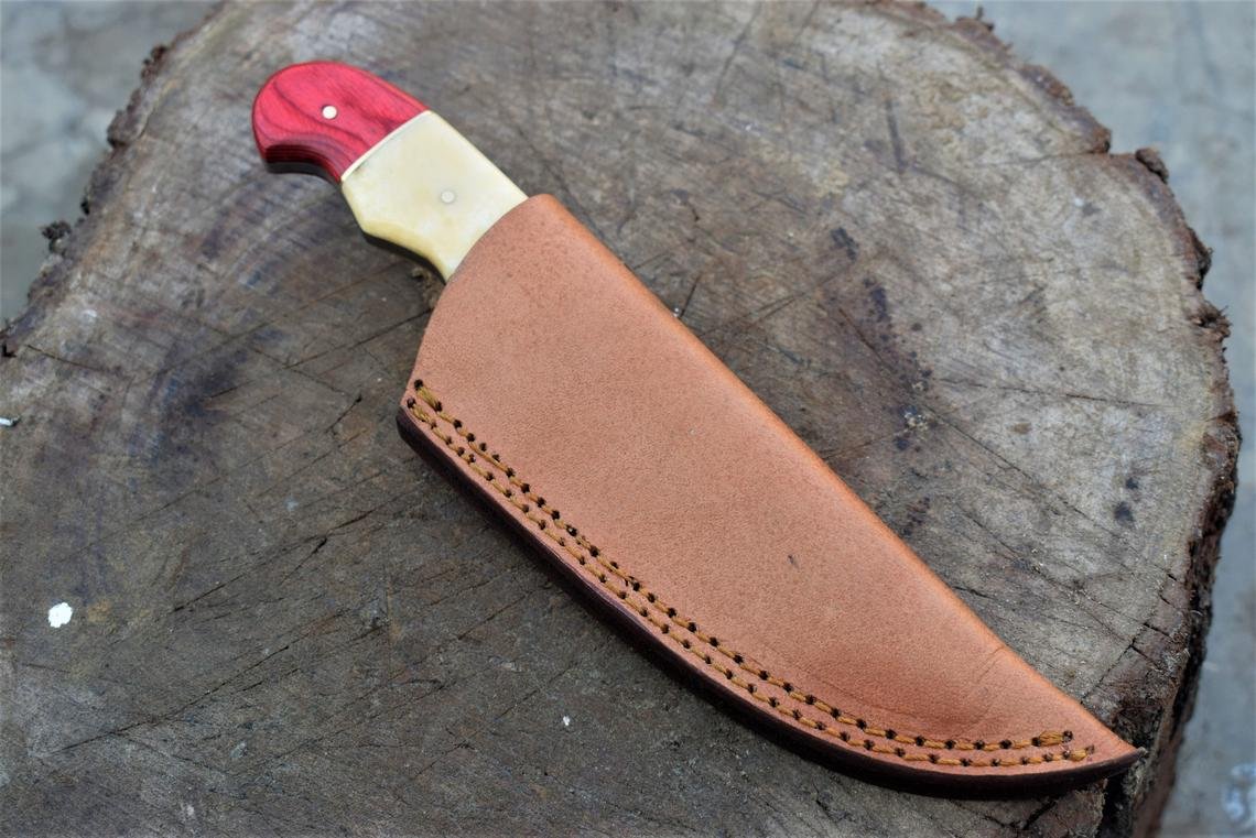 Custom Handmade Damascus Hunting knife Bone & Wood Handle with Leather Sheath/Camel Bone Knife/Hunting Knife.