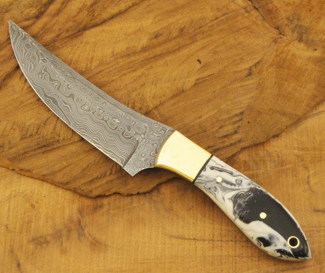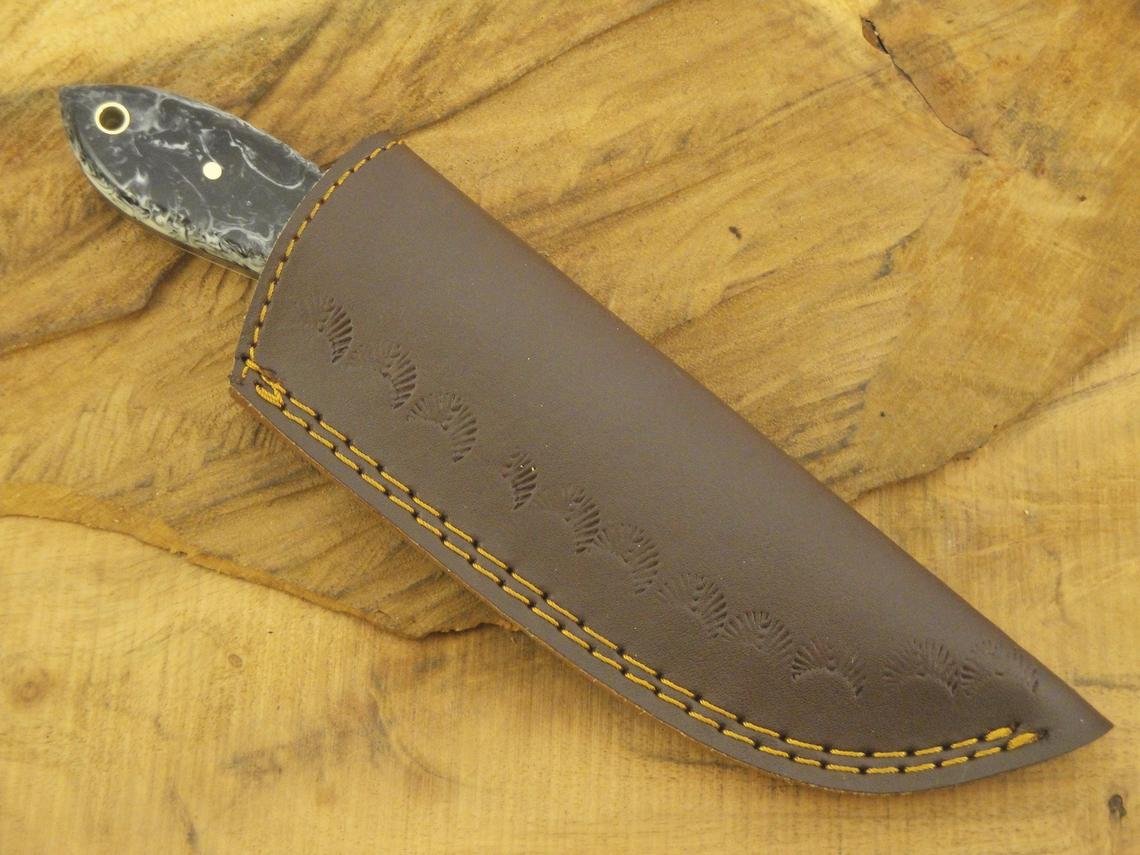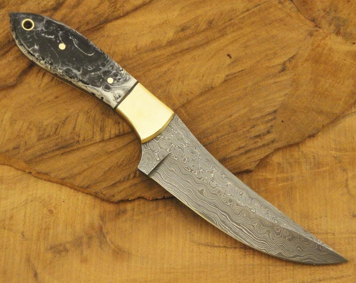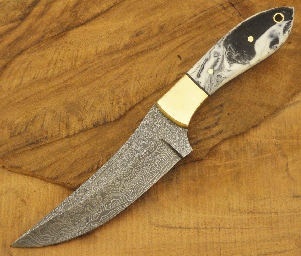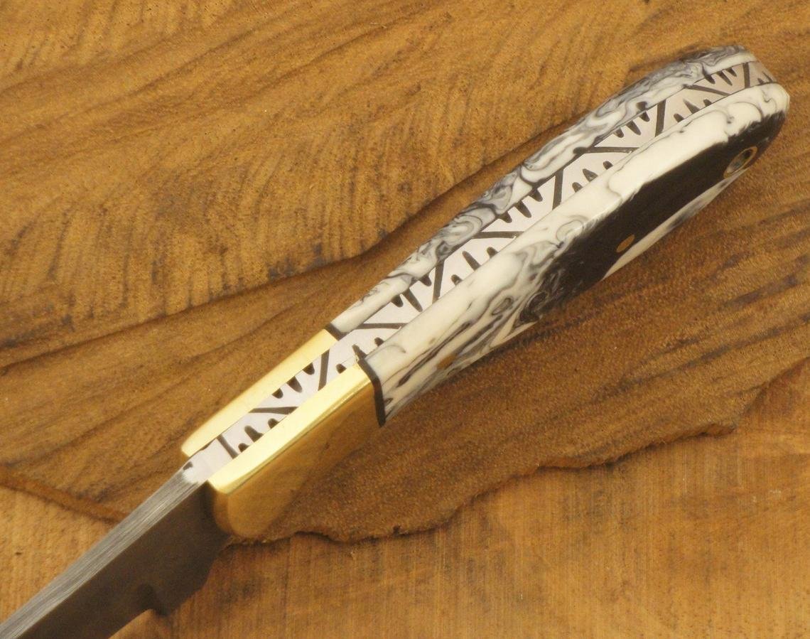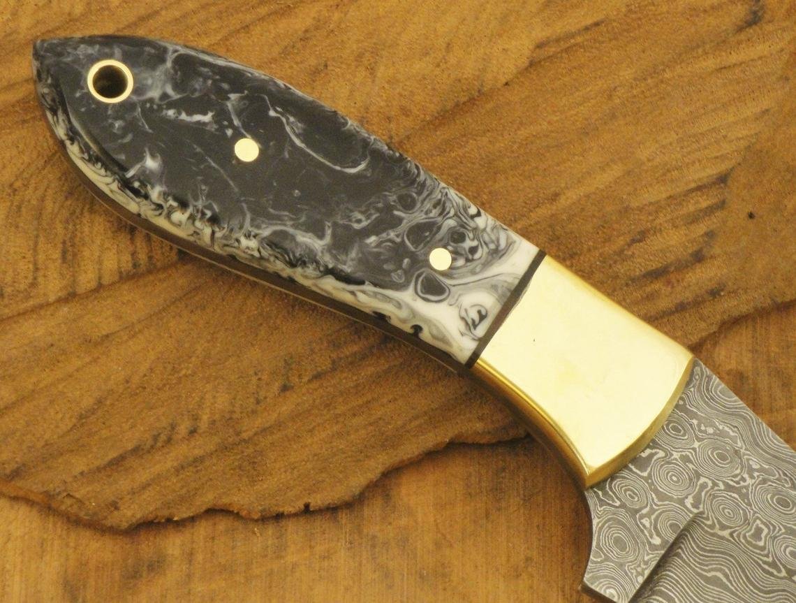 Handle Material: Black And White Plastic Marble Scales with Copper Pin and Fiber Liner