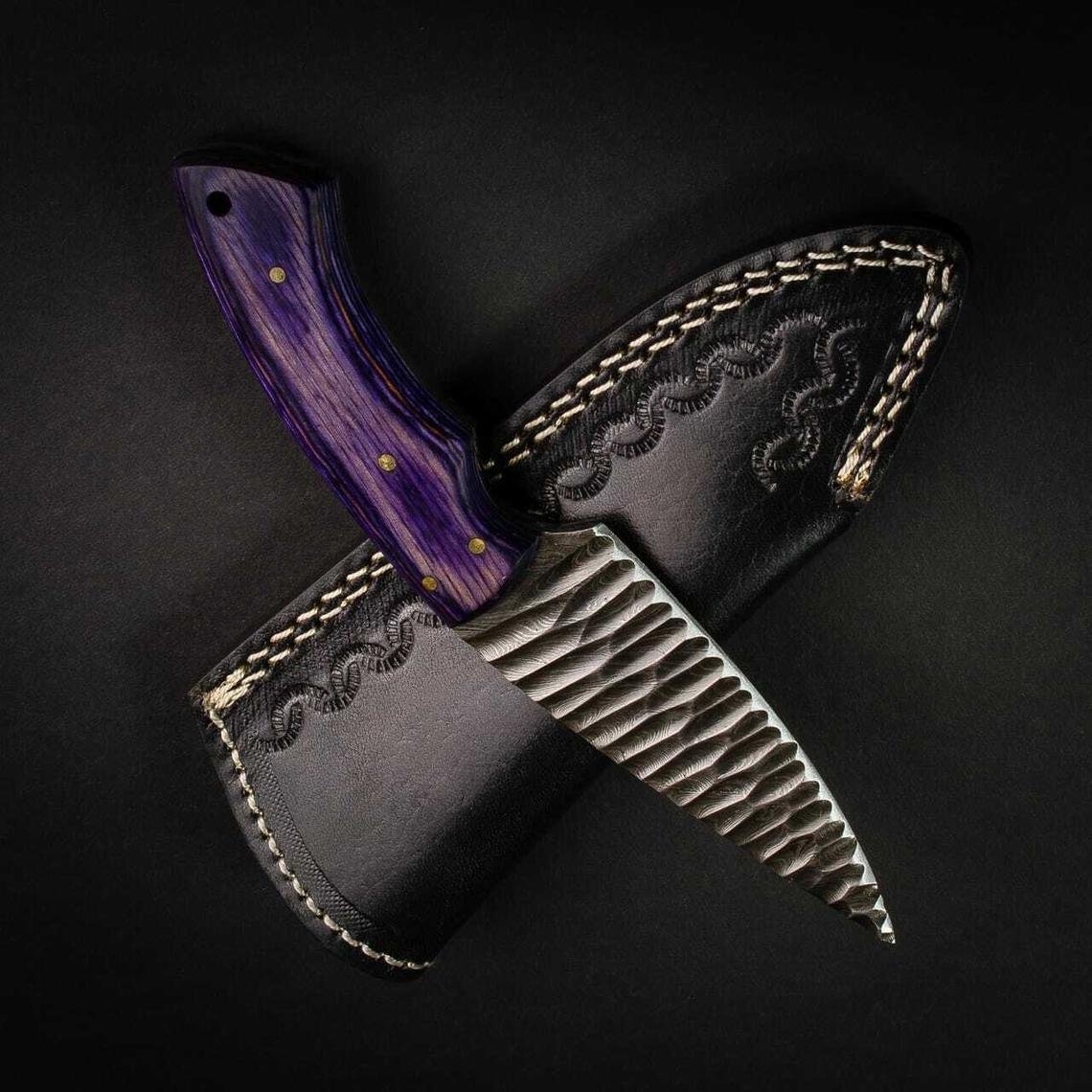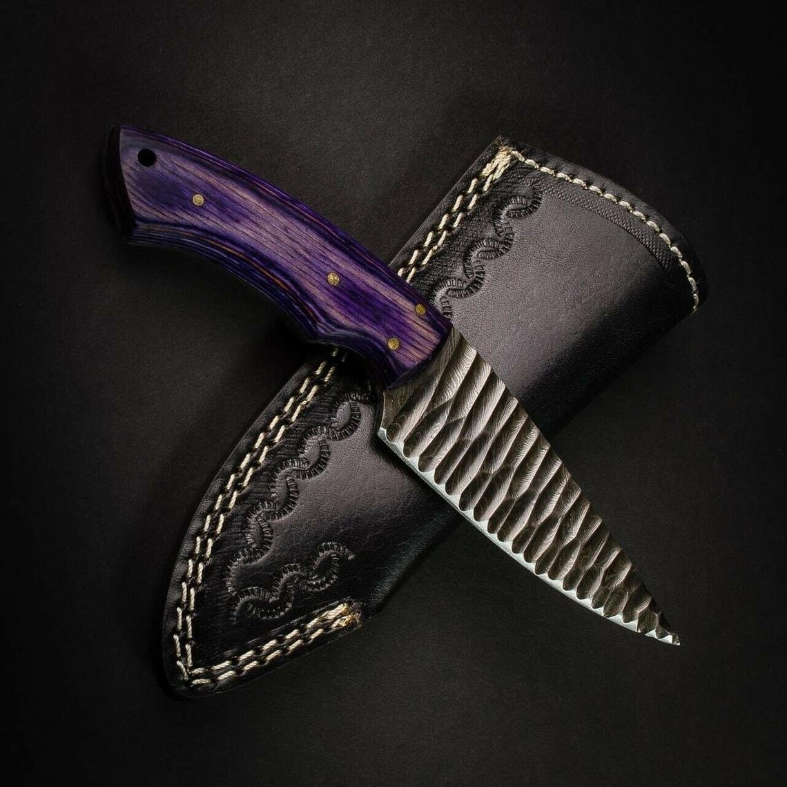 CUSTOM HANDMADE DAMASCUS Skinner Knife, Purple Micarta Handle, Razor Sharp, 8 inch