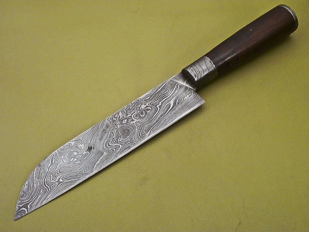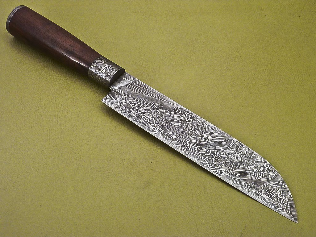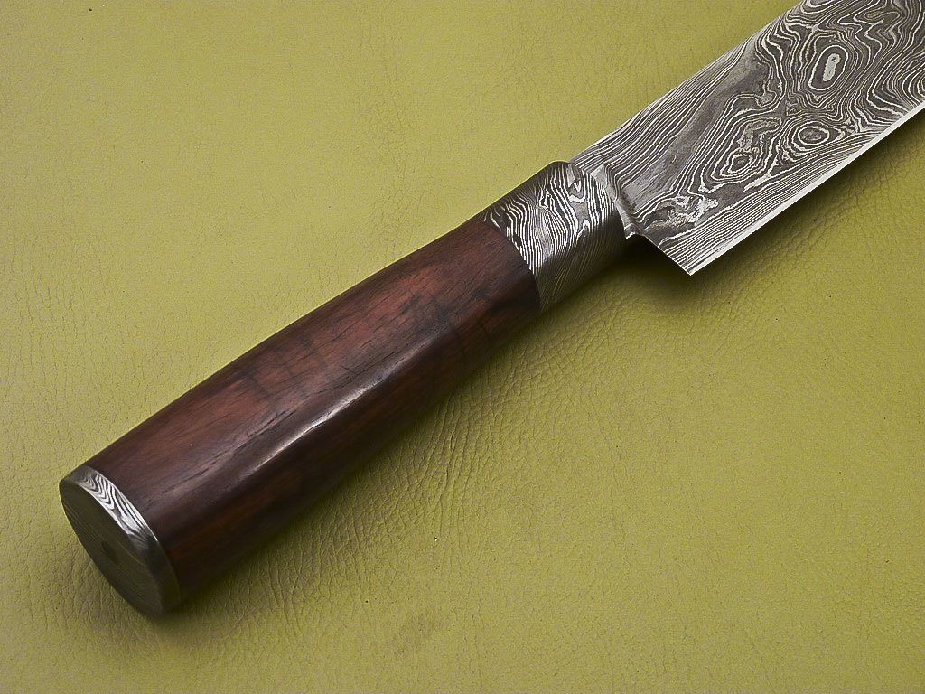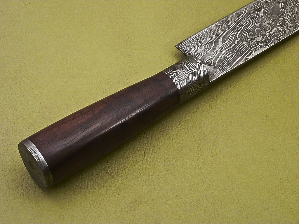 Custom Handmade Damascus Steel Chef Knife with Dark Rose Wood Handle