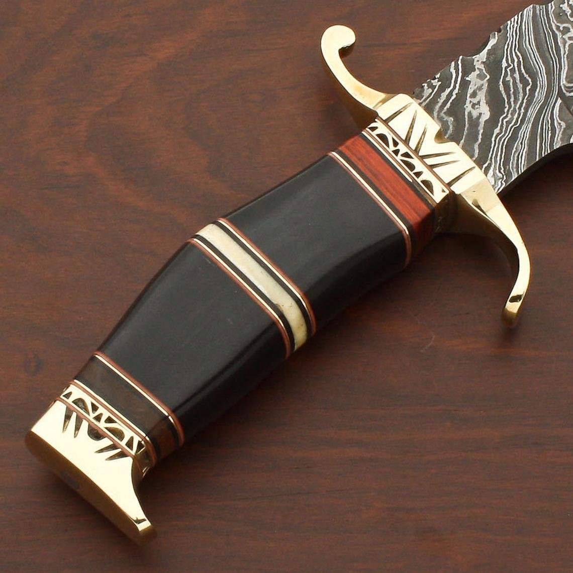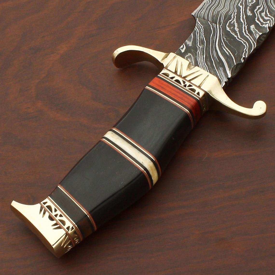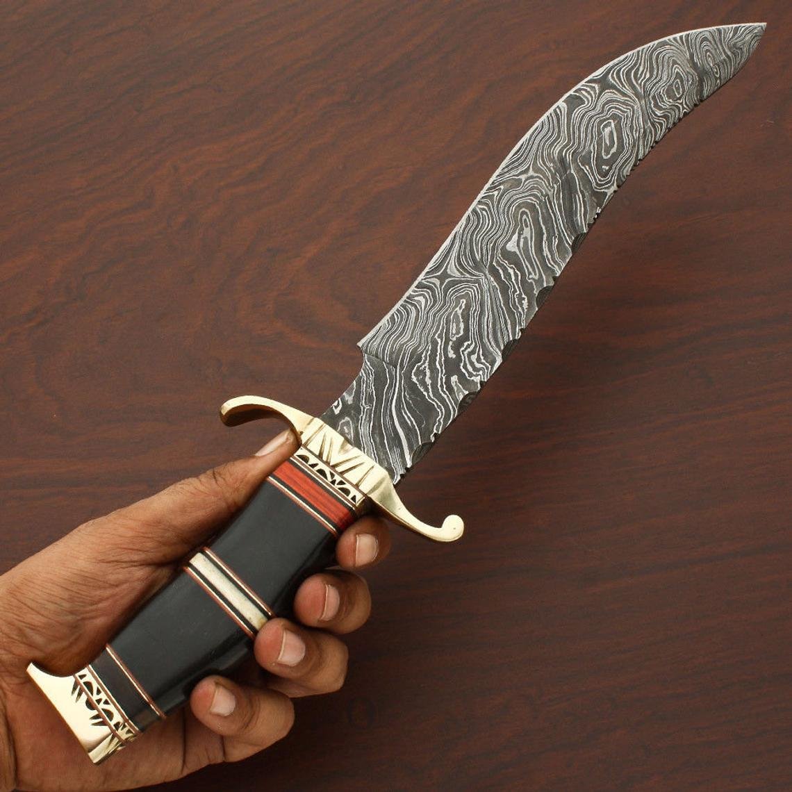 Custom Handmade Damascus Steel Hunting Knife With Leather Sheath