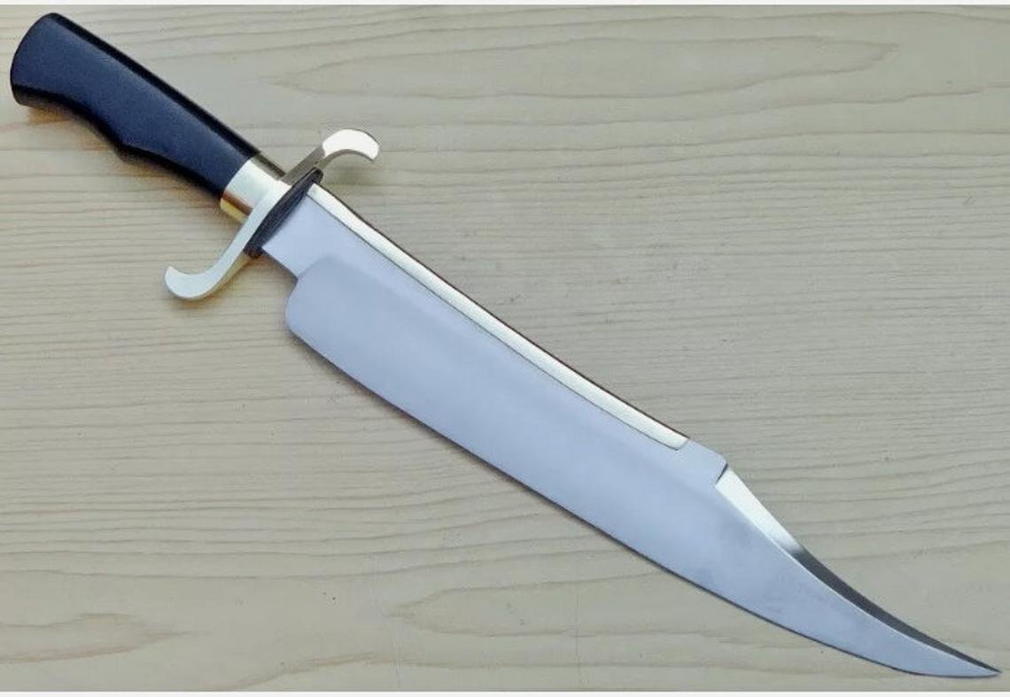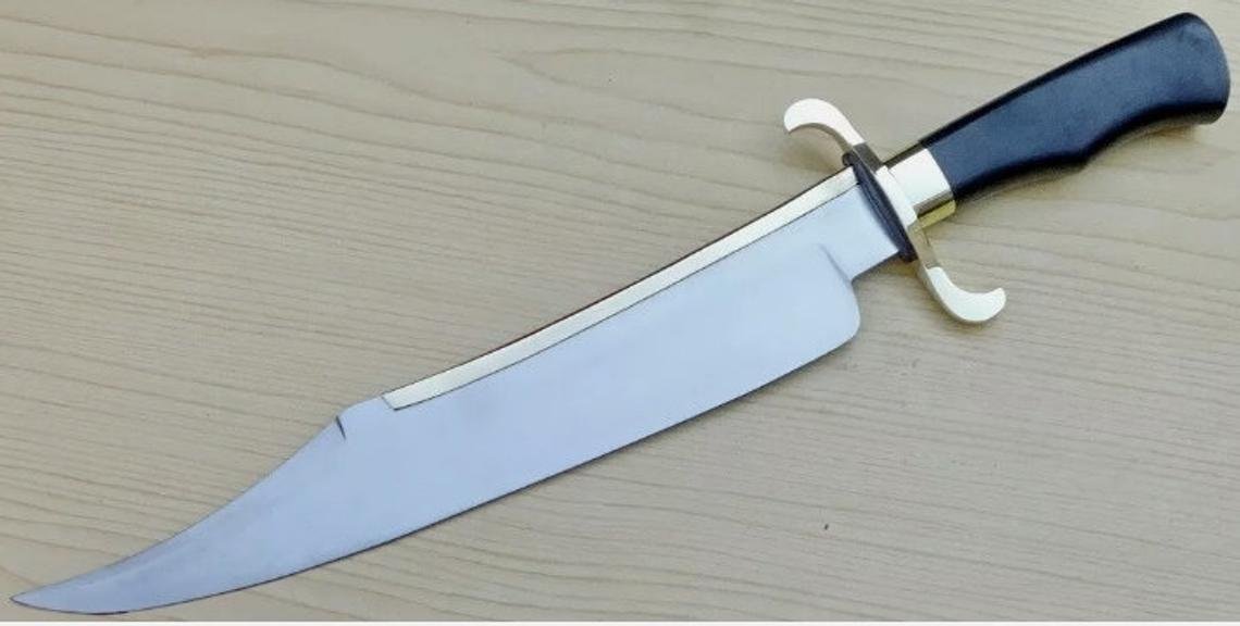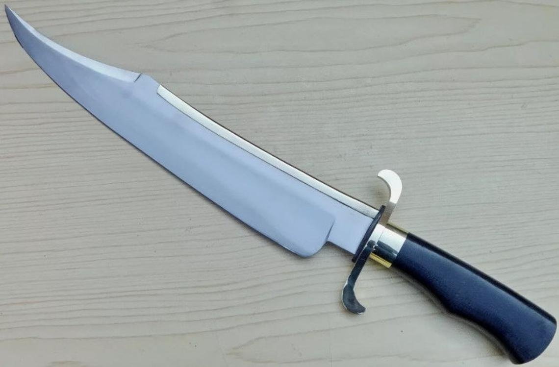 S D k Bowie knife 18″ LONG, BLADE 12″, handle 6″ knife is hand forge spring steel made by blacksmith who know the nature of smith art. every single piece we forged we do with full detail. the knife comes with leather shealth which is made from cow skin.