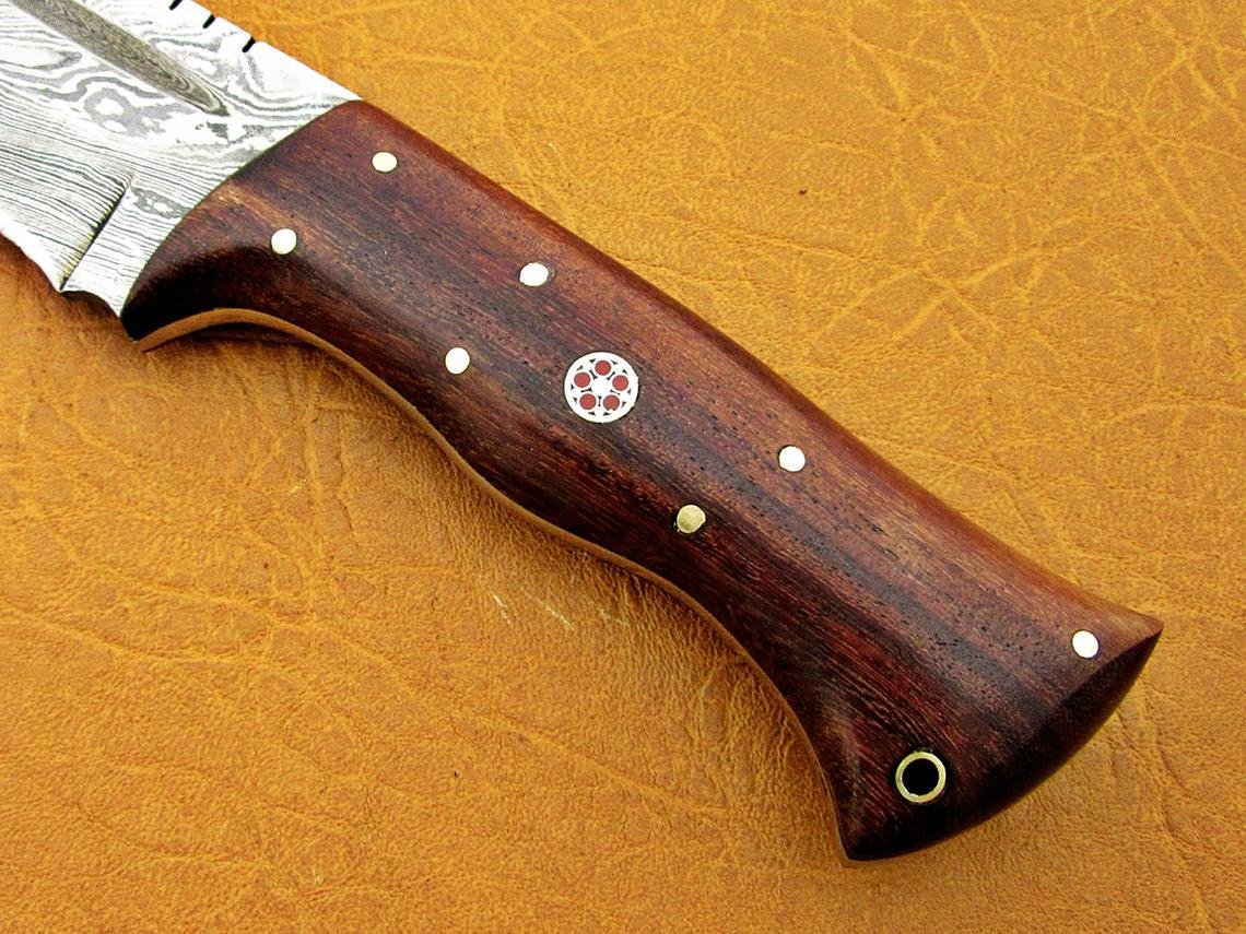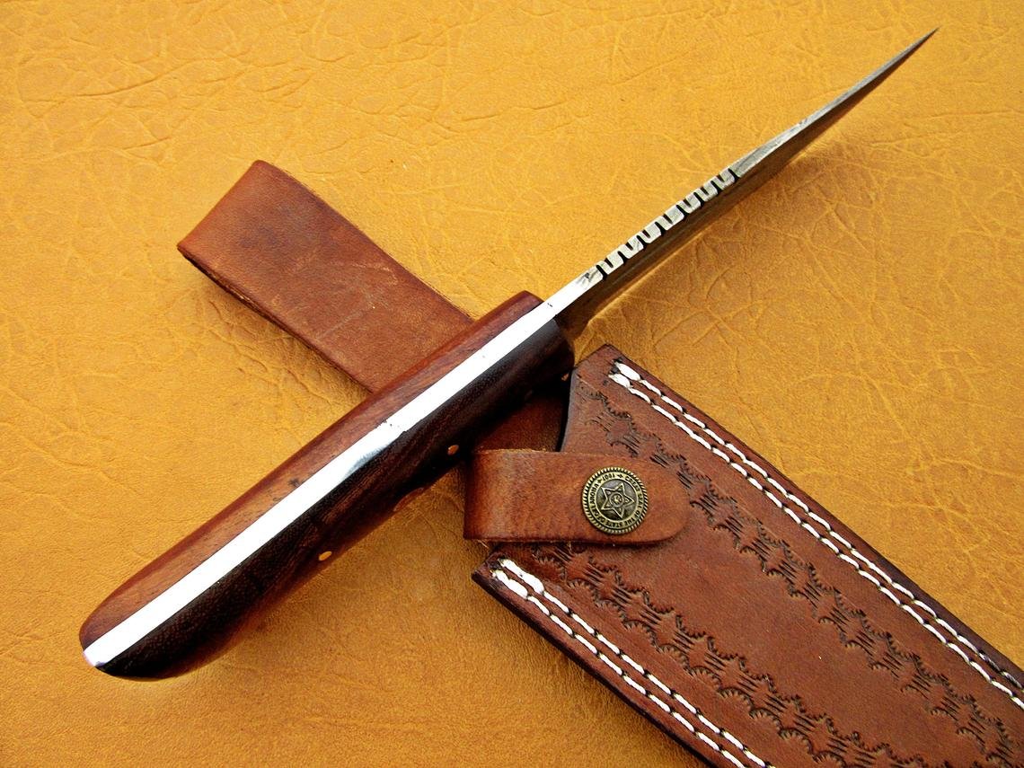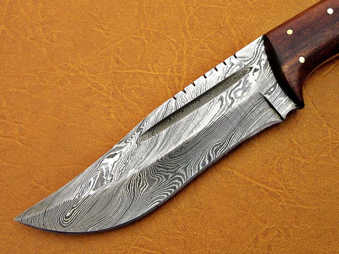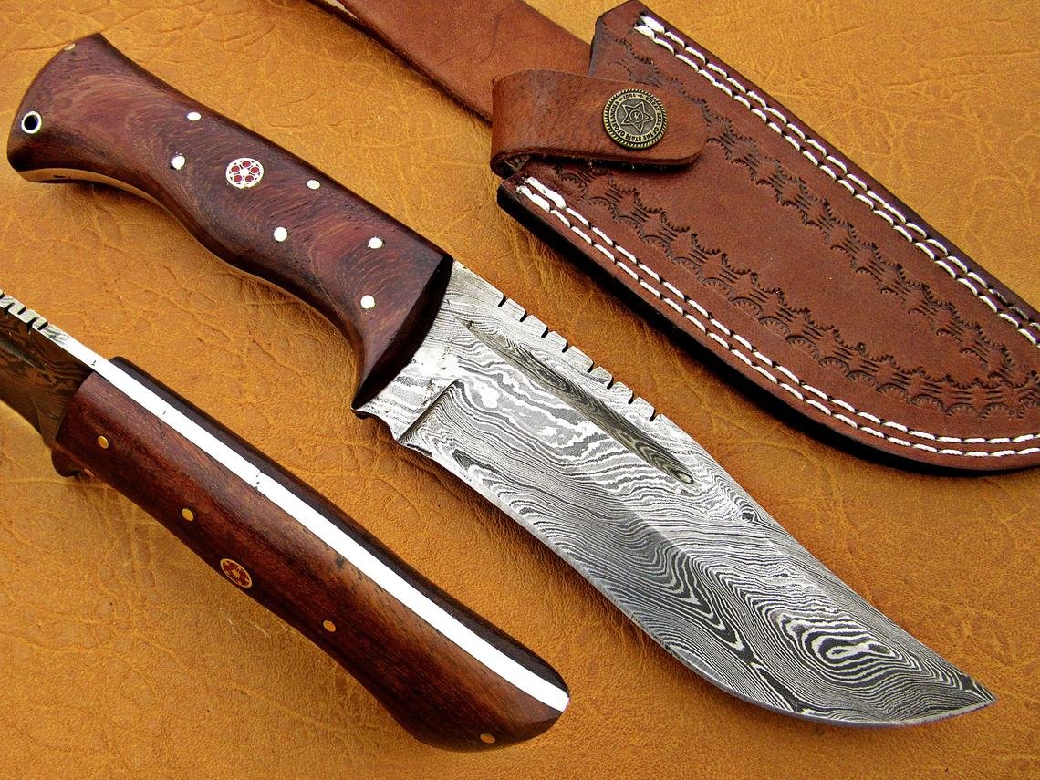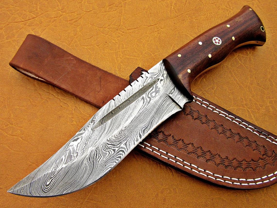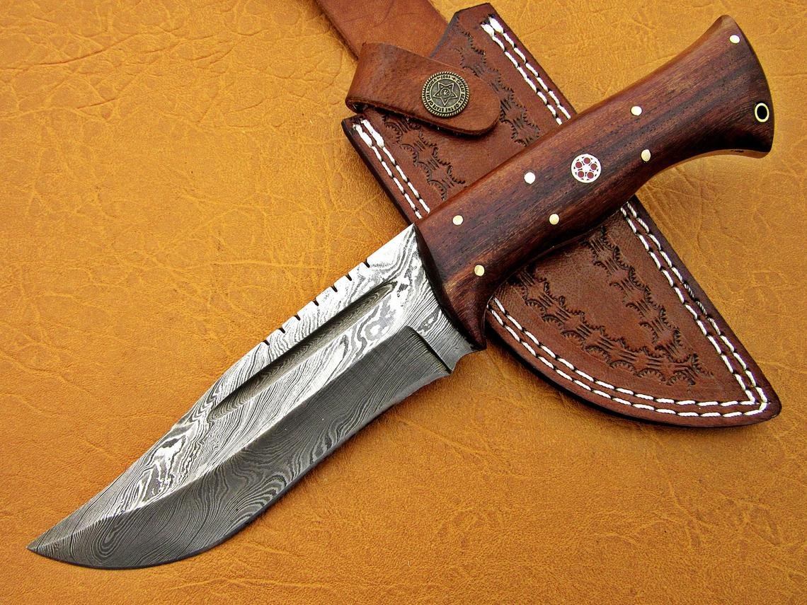 DAMASCUS HUNTING KNIFE, DAMASCUS STEEL CLASSIC BOWIE KNIFE, 9″ WALNUT WOOD HANDLE, FIXED BLADE, FULL TANG