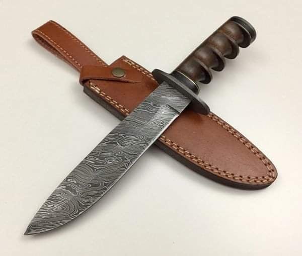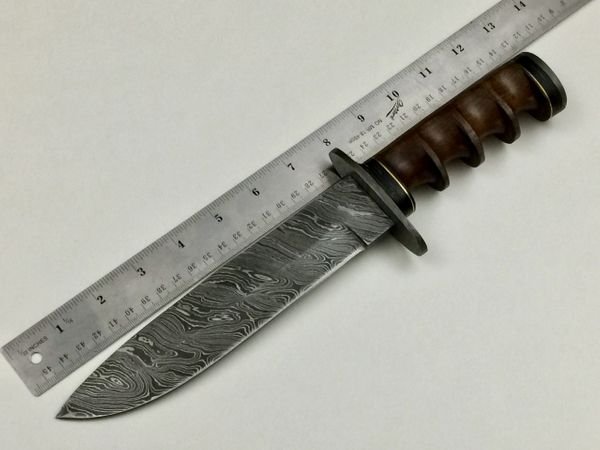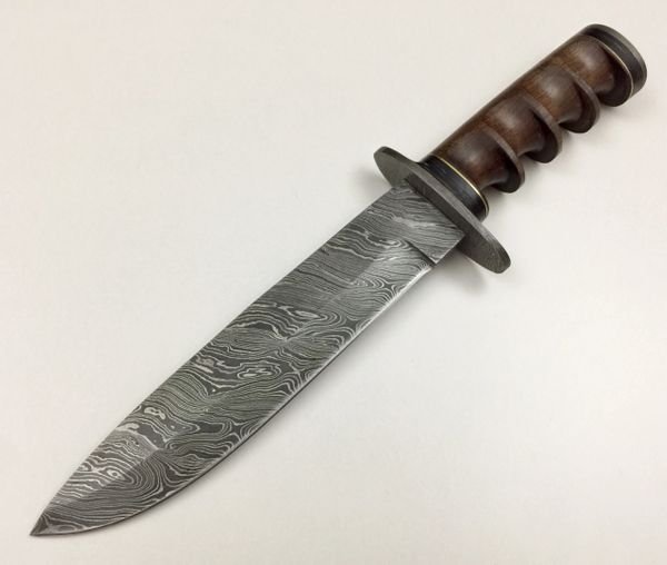 DAMASCUS STEEL CUSTOM HANDMADE HUNTING BOWIE KNIFE 13″