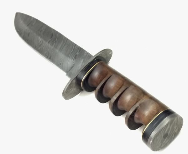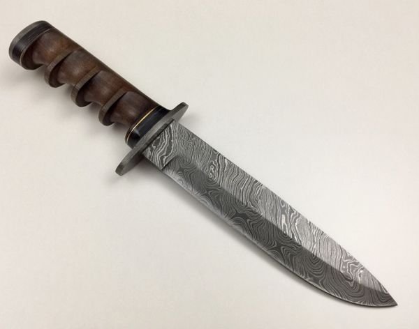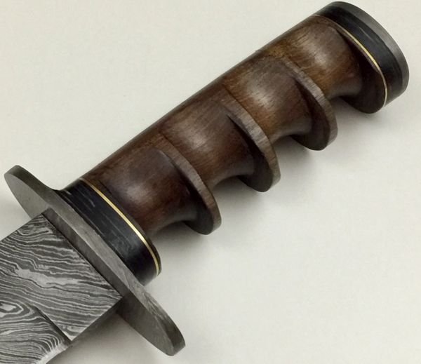 HANDLE DESCRIPTION: DAMASCUS GUARD WITH WALNUT WOOD.
