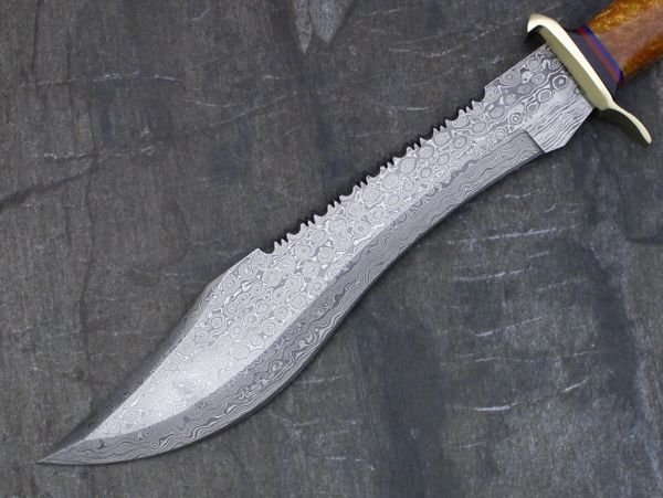 THIS BLADE IS HAND FORGED WITH 1095 AND 15N20 HIGH AND LOW CARBON STEEL. THIS BLADE IS UP TO 58 HRC ON ROCKWELL SCALE WHICH HOLDS THE SHARPNESS FOR LONG TIME AND CAN BE USED FOR TOUGH WORK.