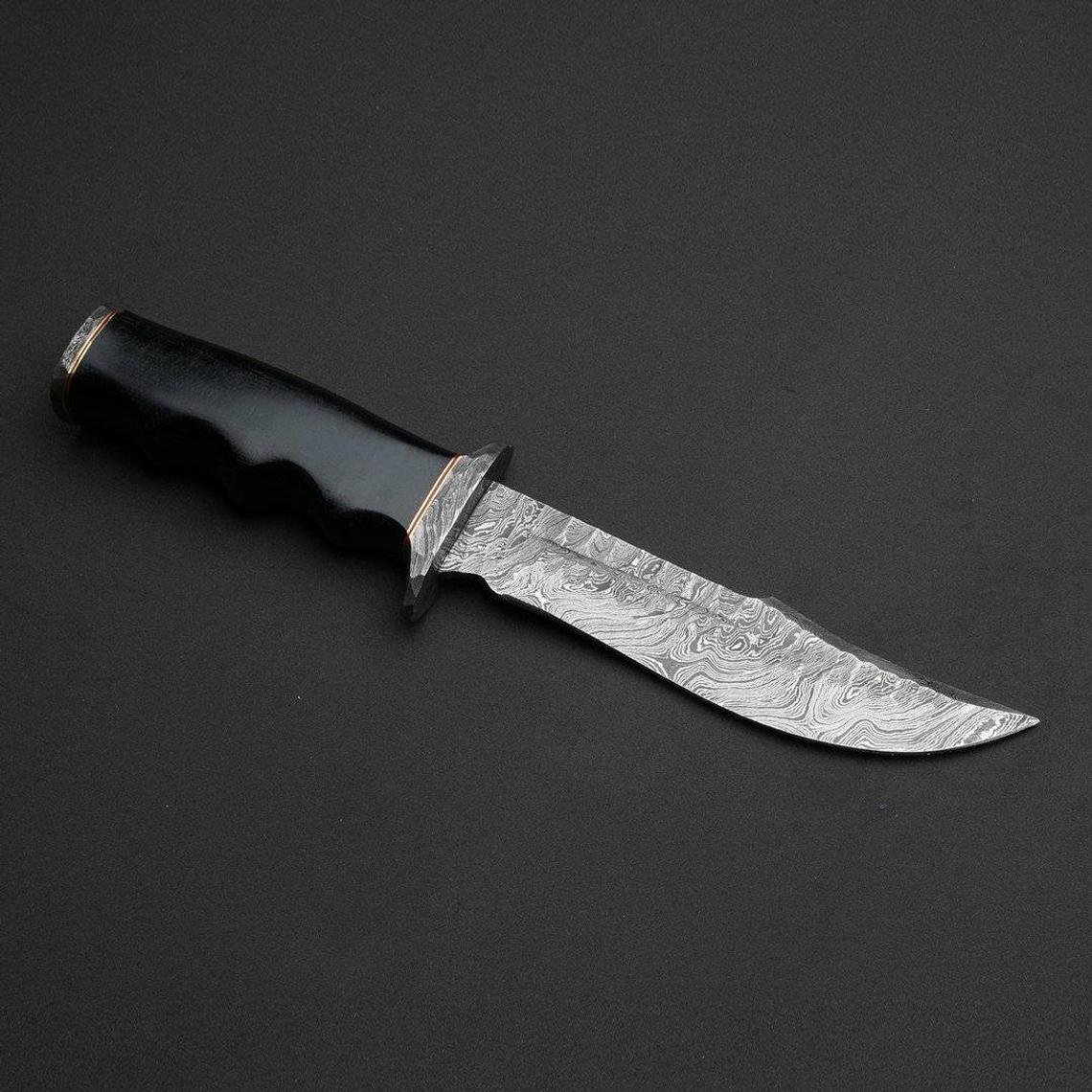 Handle material:Black micarta with damascus guards