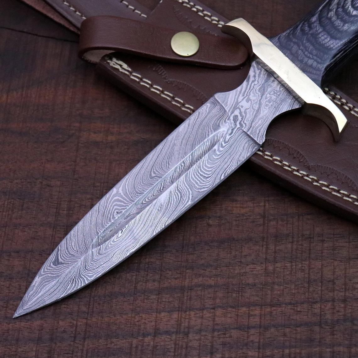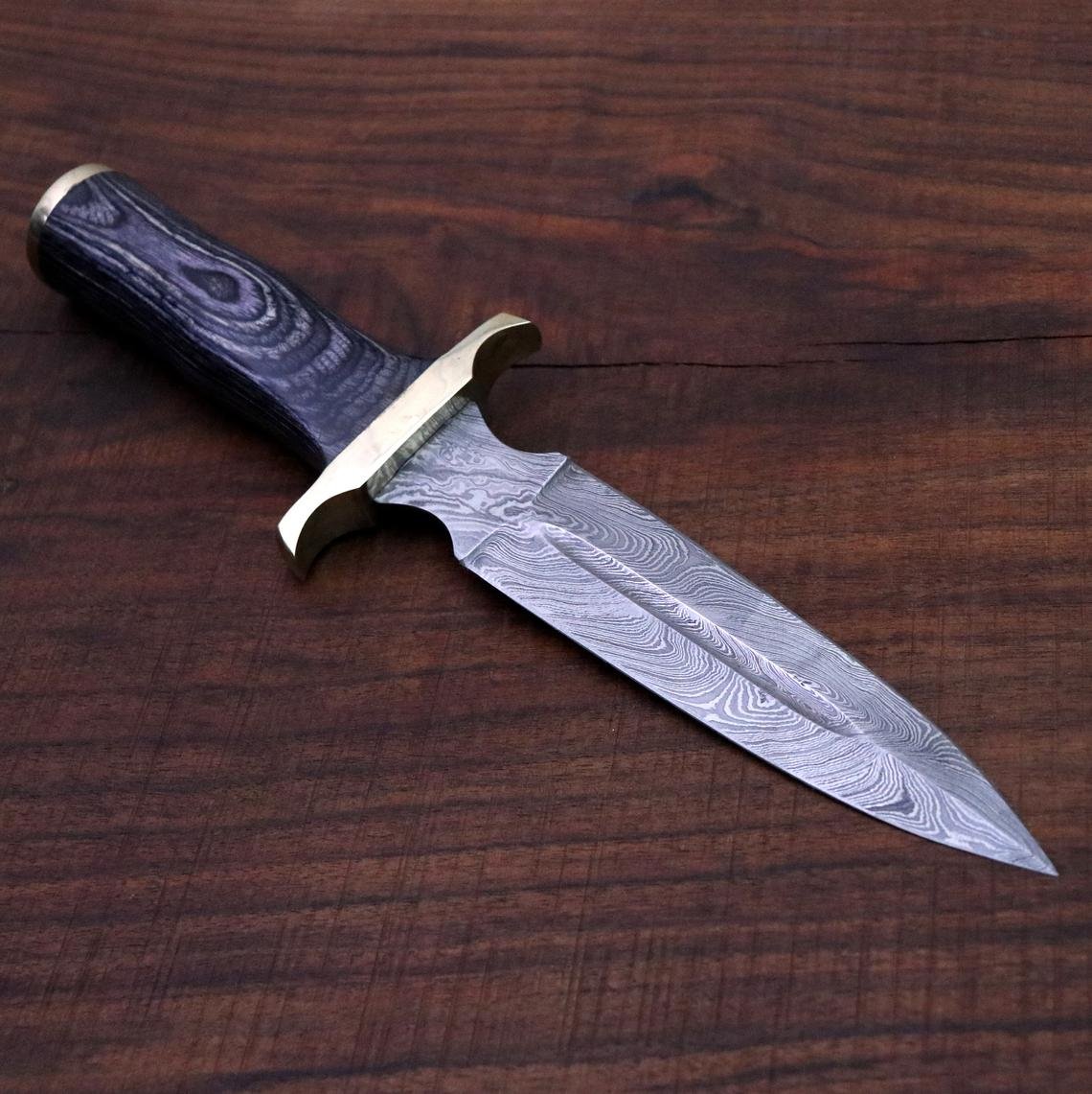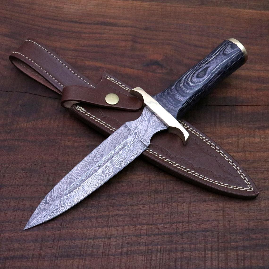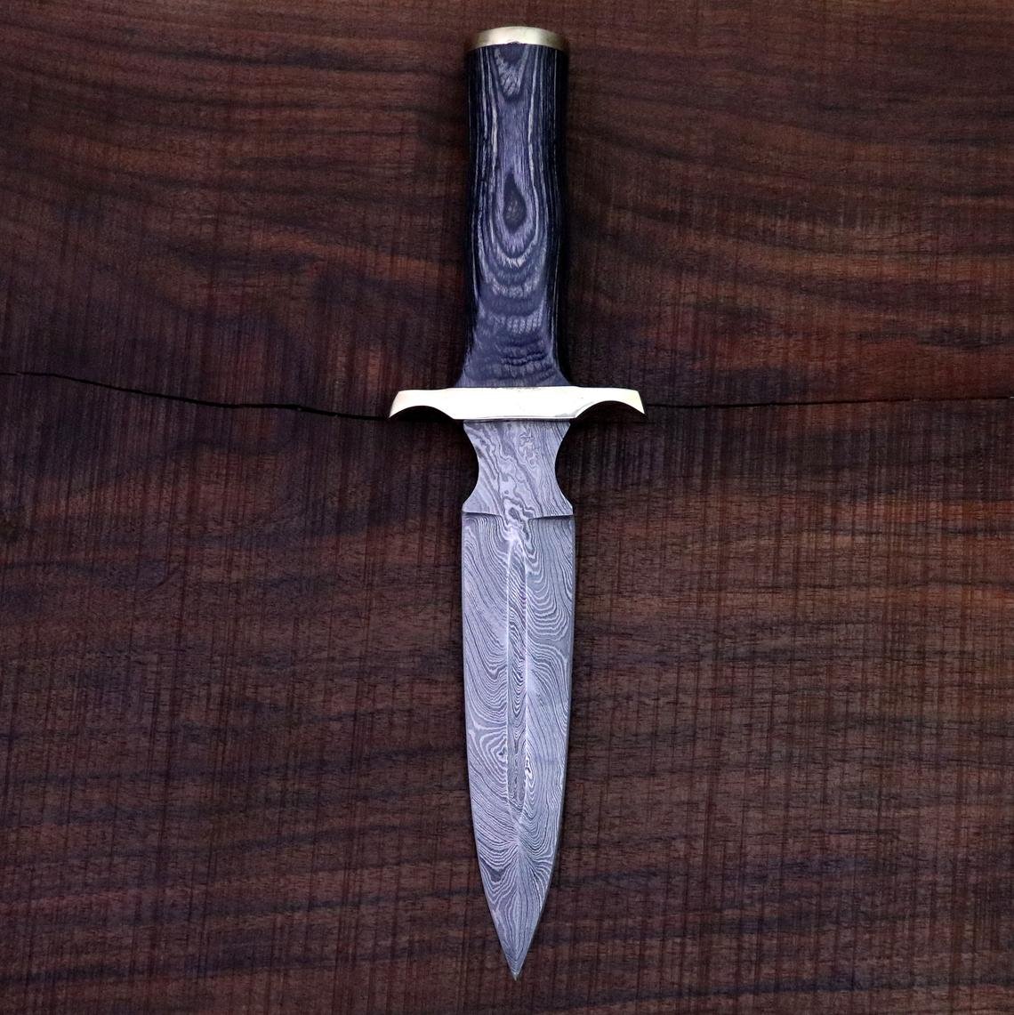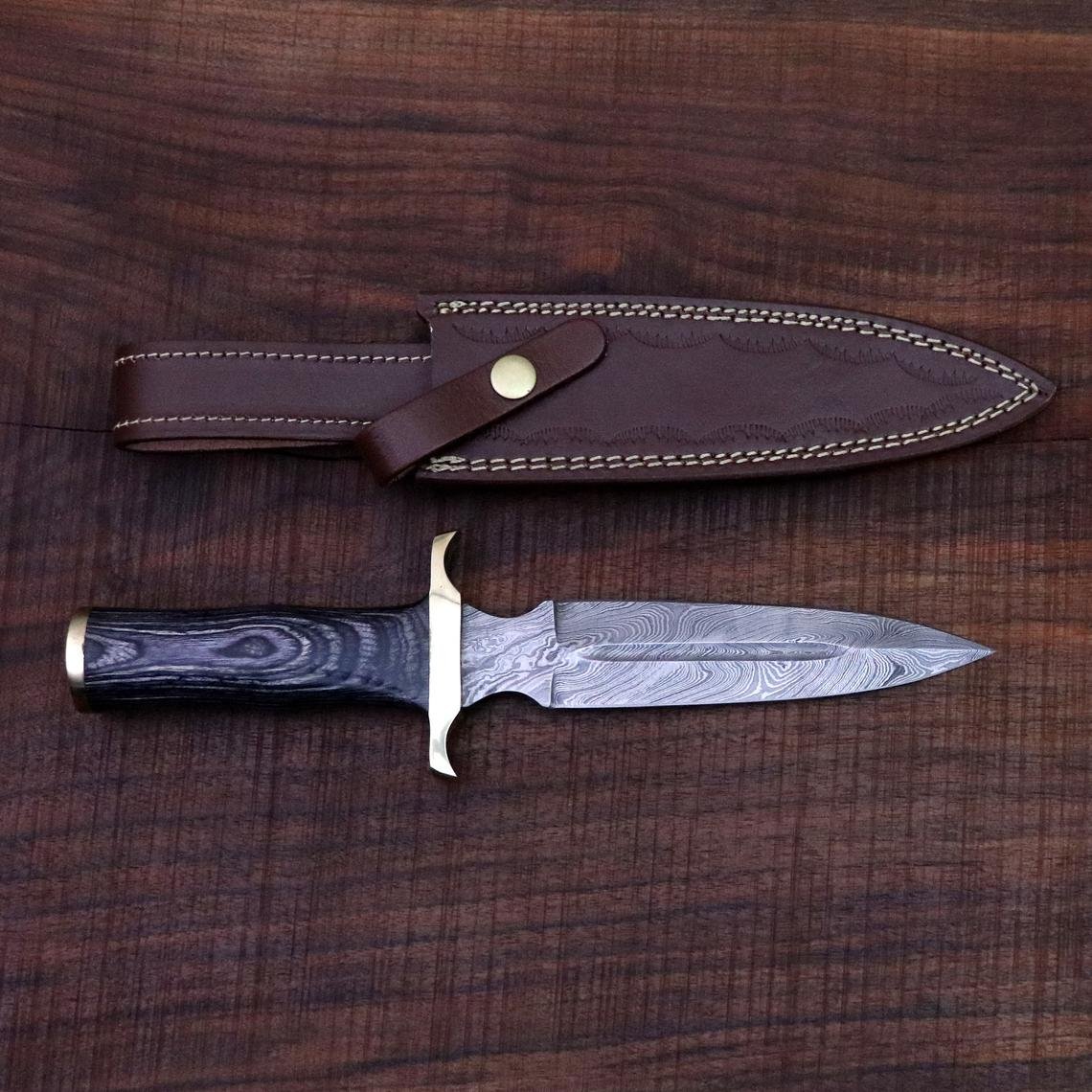Handmade Damascus Dagger – Hunting, Camping, Survival, Double edged Knife, Gift for Men, Christmas Gift for him, Anniversary