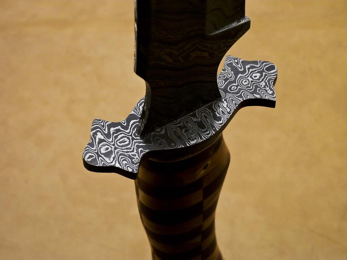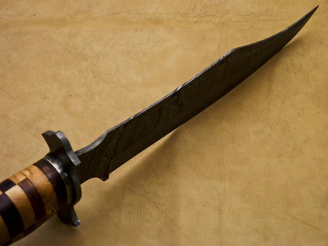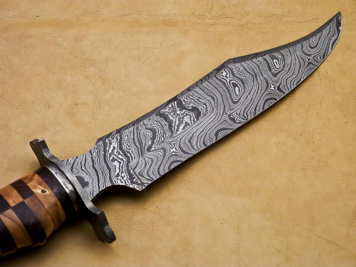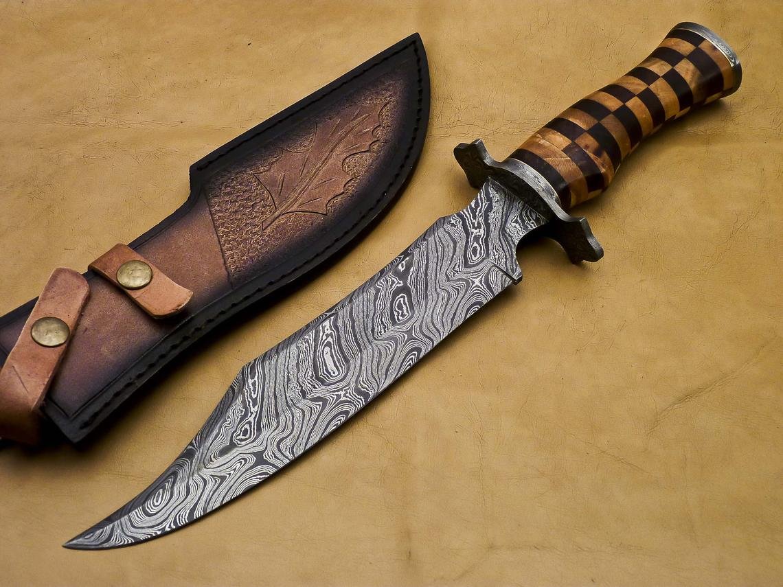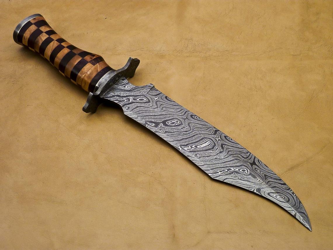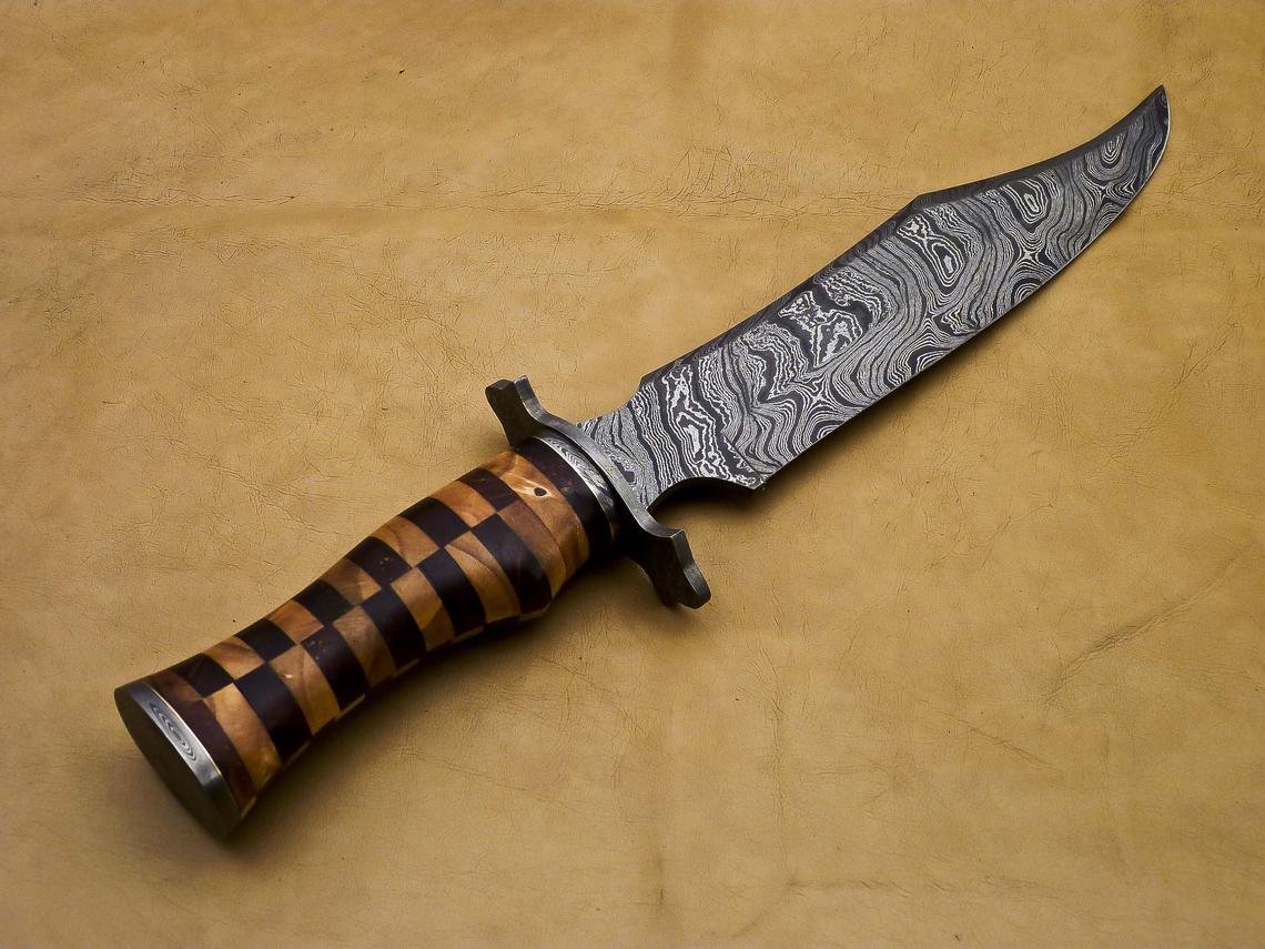 Handmade Damascus Steel Hunting Bowie Knife With Wood Handle.Beautiful Wood Art