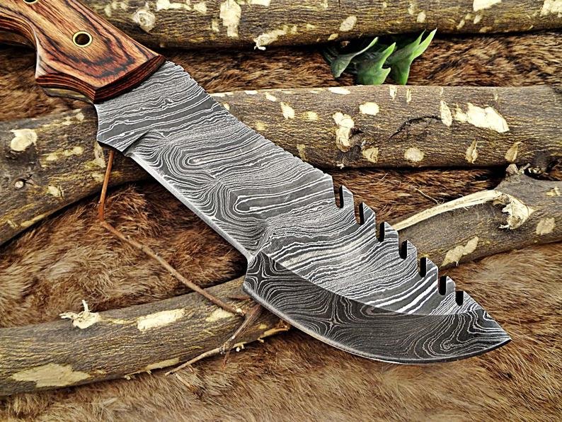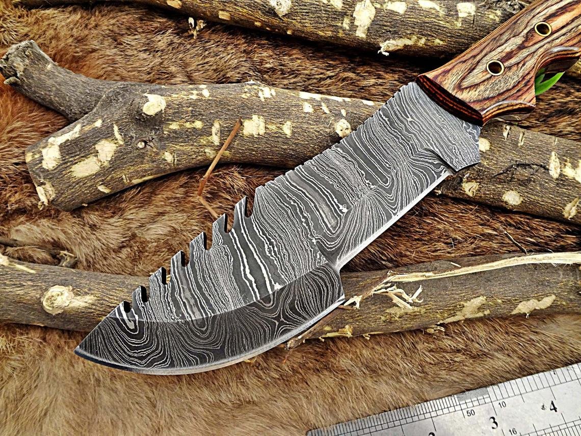 Custom Made Damascus Steel Tracker Knife.