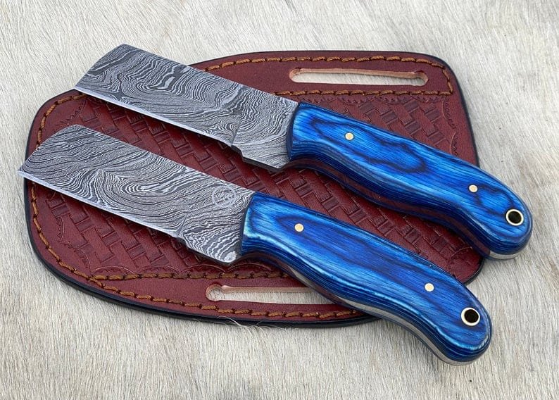 Lot of two Custom handmade Damascus steel bull cutter knife