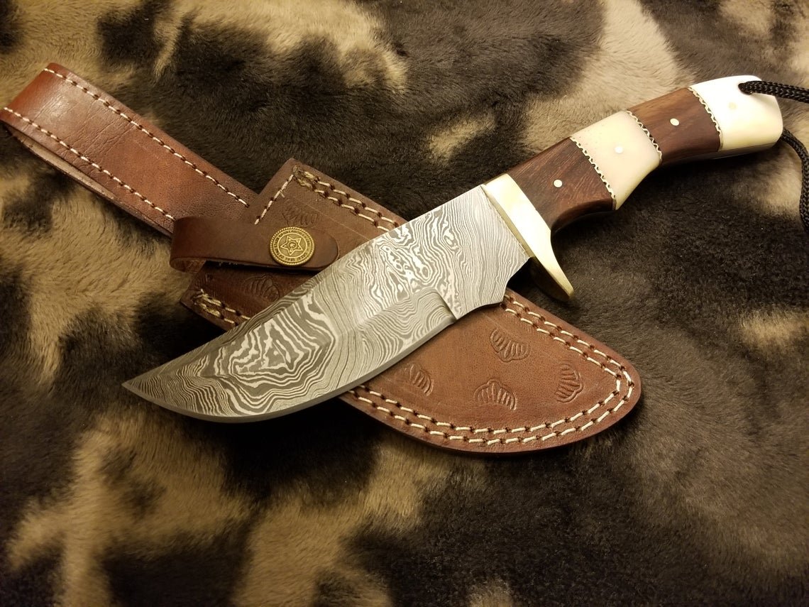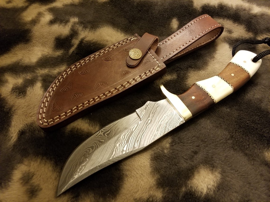 Zebra-Limited Addition-Bushcraft Damascus Steel Hand craft Knife with Combination of Walnut Wood/ Bone Brass Clip Scale